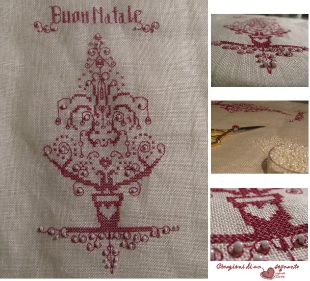 Sono anche riuscita a finire il mio albero natalizio (per lo schema cliccate qui), ora non mi resta che trovargli una cornice adatta.Poi finalmente sono riuscita a cucire il copri mensola per la cucina che avevo promesso a mia mamma (considerate che la stoffa e il bordo le ho prese alla fiera dell’Hobby...quindi l'ho fatta attendere un bel po')